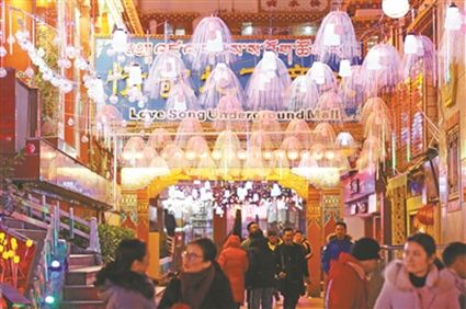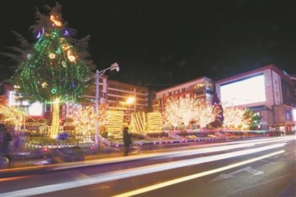 火樹銀花不夜天,流光溢彩呈繽紛。“今年的夜景真漂亮??!”旺姆阿姨和登增叔叔晚飯后帶著孫女來到將軍橋散步,在自己的家鄉(xiāng)欣賞到如此美妙的景色,登增叔叔忍不住夸贊。此時(shí),將軍橋道路兩旁的綠化帶在彩燈的映襯下輪廓畢現(xiàn),與玻璃棧道上的光影交相輝映,城市美景盡在其中。