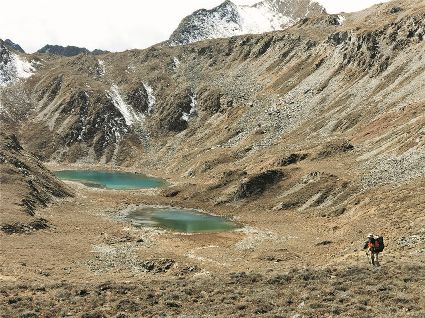 這條走海子看貢嘎的線路需要兩天一夜,第一天,從康定市貢嘎山鄉(xiāng)木居村出發(fā)到達木居海,路程大概六小時,達到后在海子邊露營一晚,期間有可能看見日照金山的美景。第二天,從木居海出發(fā),沿著大山脊到達尼瑪達瓦湖,大概兩個小時的行程,可以在這里路餐,稍作休息,繼續(xù)沿著大山脊走,差不多兩小時就到達達瓦伽馬湖,繼續(xù)向南,到達一個如心型的無名湖泊,再沿著山溝一直向下,走到玉龍西鄉(xiāng)村公路,整個行程結(jié)束。