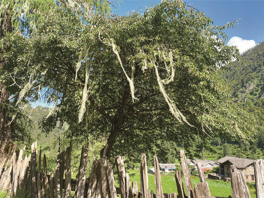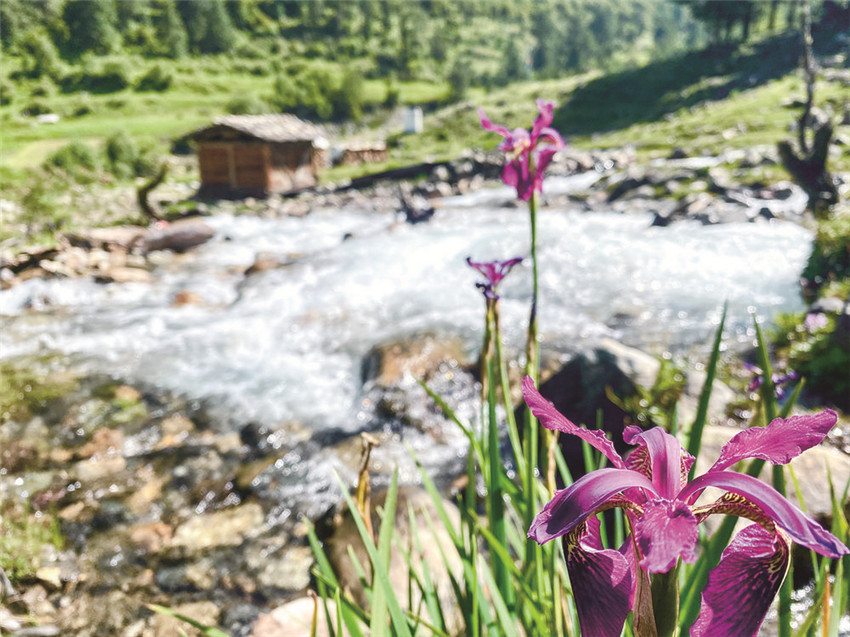 女人們相約去后山林中撿野生菌。一位穿氆氌袍子的老牧人領(lǐng)著小孫女,還有一只勇猛地藏獒,在石屋后方的草坪上等太陽(yáng)。微風(fēng)輕拂著他們腳邊盛開(kāi)的鳶尾花,細(xì)聽(tīng),那鈴鐺般的花朵搖響嘶嘶桑桑的音樂(lè)。小女孩在花叢中那條伸向牧場(chǎng)的小路上撿拾白色的小石子,裝入衣包里,鼓脹后就取出一枚枚投向花叢中的黑蝴蝶,令它的世界撲朔迷離。老牧人瞇縫著眼睛,翻轉(zhuǎn)粗糙的手心手背,仿佛要使它也開(kāi)出鳶尾花朵來(lái)。我朝他們走去,小女孩朝我跑來(lái),撲進(jìn)我的懷中喊我阿尺。我撫摸她頭頂上的卷發(fā),像撫摸著一只乖覺(jué)的小鹿。
