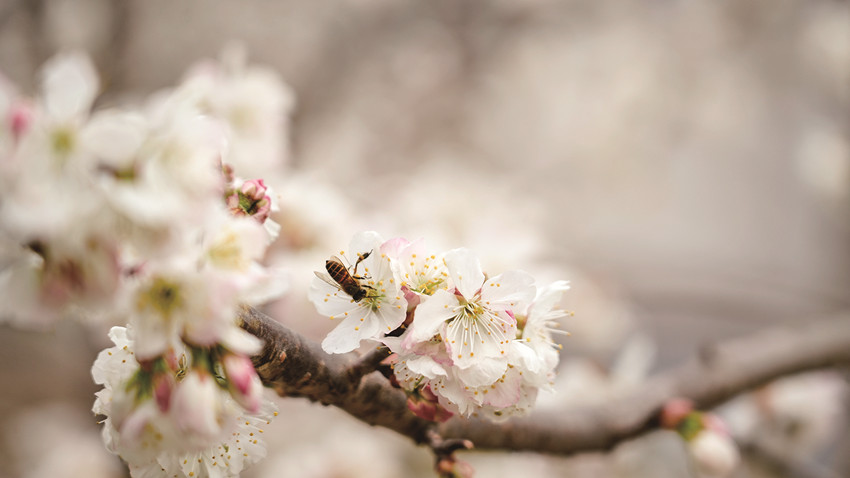 在冷磧鎮(zhèn)杵坭村,一場新雨過后,空氣中混雜著泥土與櫻桃花的芬芳,花朵們正迎春綻放,一簇簇、一串串,密密匝匝地綴滿枝頭,散發(fā)出沁人心脾的花香,蜜蜂飛舞在櫻桃花樹間,為一個月之后的豐收而忙碌。沿著觀光大道,綿延數(shù)公里的櫻桃花吸引了不少游客前來游玩打卡。