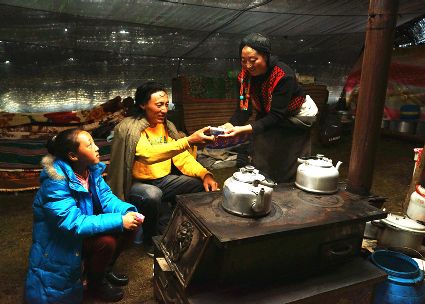 達(dá)珍和她的丈夫是我州爐霍縣宗塔草原上普通的牧民,育有一對(duì)兒女,都在縣上讀書,小兒子上小學(xué),大女兒讀初中,放暑假,11歲的女兒回到了牧場(chǎng),幫助阿爸、阿媽放牧。女兒的到來(lái),讓達(dá)珍家每一天都充滿了歡笑,7月中旬的一天,筆者來(lái)到了這里,用像機(jī)記錄了達(dá)珍的一個(gè)早晨,那是一個(gè)朝霞滿天的開始?!?郭昌平 攝影報(bào)道