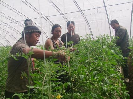 本網(wǎng)訊(馬建華 文/圖)陽(yáng)春三月,爐霍大地仍然一派蕭條景象。然而在爐霍縣斯木鄉(xiāng)吉絨村的蔬菜大棚里,卻綠意盎然。紅彤彤的樹番茄、碩大的茄子、長(zhǎng)勢(shì)喜人的青椒、紅艷艷的花卉,大棚里溫暖的春色吸引了縣城市民和游客前來觀光,購(gòu)買新鮮的蔬菜。比縣城菜市場(chǎng)價(jià)格便宜一半的蔬菜,讓市民爭(zhēng)相前來購(gòu)買。吉絨村村民將土地流轉(zhuǎn)給蔬菜種植公司,收取土地流轉(zhuǎn)費(fèi),在蔬菜大棚里打工,每天還有100元錢的收入,而且學(xué)到了先進(jìn)的蔬菜種植技術(shù),為今后發(fā)展蔬菜大棚、種植反季節(jié)蔬菜、增加經(jīng)濟(jì)收入打下了堅(jiān)實(shí)基礎(chǔ)。爐霍縣在發(fā)展高原特色現(xiàn)代觀光農(nóng)業(yè)方面邁出了可喜步伐。