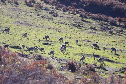 積雪融化后在卡瓦洛日腳下,匯集成兩個(gè)長(zhǎng)800米、寬300米的姊妹湖。雪山俯瞰湖泊,湖泊倒映雪山,奇花異草簇?fù)碇?,湖里棲息著高原野鴨和各種水鳥,一切都顯得那么相映成趣,是欣賞和拍攝卡瓦洛日的最佳視角之一。 (根呷扎西 攝)