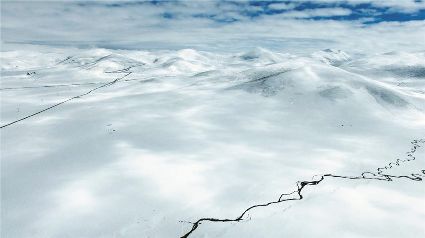 深入高山,偶然發(fā)現(xiàn)一路動(dòng)物經(jīng)過的痕跡,就像是追逐著太陽向更高更遠(yuǎn)走去。誠然,若不是現(xiàn)代文明的不斷進(jìn)步,要生活在這里是不易的,因?yàn)槎┑木鞈俸筒簧幔屧ㄔ谝荒昀锞陀虚L達(dá)近半年的時(shí)光與雪相伴。或許是因?yàn)楝F(xiàn)代科學(xué)技術(shù)克服了嚴(yán)寒,或許是因?yàn)檫@里有無出其右的白雪美景,或許是因?yàn)閷κ嵵氐某绨?,才讓扎溪卡兒女千百年來在這里扎根,在這里生存、繁衍,不斷傳承、生生不息。