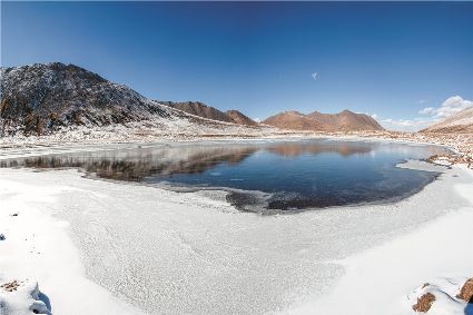對常年生活在這片土地上的人們來說,一夜便能厚積沒履的大雪早已見慣不驚,但走出縣城一瞥石渠秋日的雪景,依舊讓人不由驚嘆大自然的鬼斧神工。不似平原、丘陵之妖嬈,石渠的雪景是宏偉壯麗的、是氣勢磅礴的,置身其中頓感渺小,心中唯余對自然之敬畏。在25191平方公里的土地上,無論草原或是山巒,入眼皆是一片耀眼的銀白,在頭頂萬里無云的湛藍(lán)天空的輝映下,整個(gè)石渠只剩干凈的藍(lán)和純潔的白。