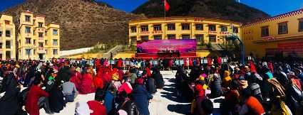 11月18日,筆者跟隨州委群眾宣講團來到鄉(xiāng)城縣熱打鄉(xiāng)日然寺,宣講現場宏大的場面和龐大的觀眾人數給了我們不小的驚喜,場地雖然是安排在了日然寺,但附近的村民都趕來聆聽宣講,368人齊聚一堂,讓日然寺的壩子顯得有些擁擠。