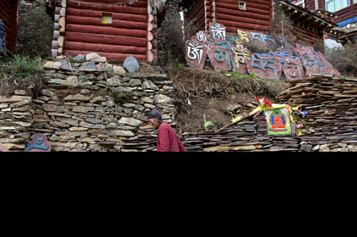 白玉縣,白玉寺,農(nóng)牧民正在雕刻大藏經(jīng)印版。