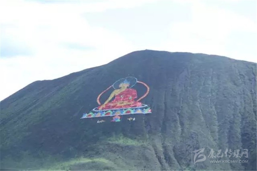 看,佛主正在向我們微笑,這尊巨大的佛像是由然梯寺的活佛使用4萬根經(jīng)幡,在沒有使用任何輔助工具的情況下花費一個月的時間創(chuàng)作而成。每當風(fēng)吹過,大佛就會隨風(fēng)飄舞。就如同在向四面八方散發(fā)佛光一樣。