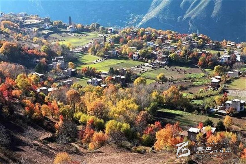 遠(yuǎn)遠(yuǎn)看去,充滿靈氣的山谷中,翡翠般的青草綠樹之中,是那沉甸甸的田地和隱在密林深處的寨房,伴著時有時無的潺潺溪流,一幅富有動感的絕妙山寨畫卷隨之展示在你的眼前。山寨依山面水,周圍綠樹掩映,藏寨從大金河谷層層疊疊向上攀沿,錯落有致的散布在山坡上,一直延伸到卡帕瑪群峰峰的腳下,非常的漂亮。