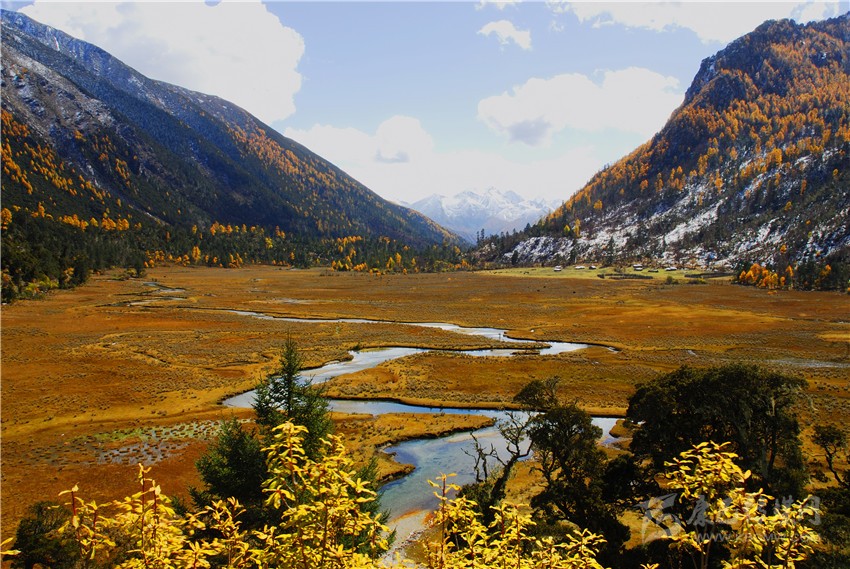 第一場(chǎng)秋雨開始的時(shí)候,高山上便開始飄起了雪花,到了九月左右,圣潔的雪山便開始層層包裹雪白的衣衫,為來年的春夏積攢滋養(yǎng)的泉水。秋天沿著山峰從高處漸次向下,一些低矮的灌木也迫不及待的穿上絢爛的秋裝。陣陣秋風(fēng)吹過,色彩自然越加濃烈。