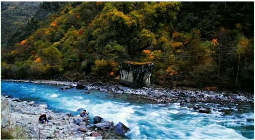 東谷河原名牦牛河,在丹巴縣五個主干水系中,它是最小的一條,兩岸多為峽谷地貌,僅在支溝匯合處出現(xiàn)有平壩草地。在陡峭高聳的河谷兩岸,針闊葉混交林呈現(xiàn)出深淺不同的綠色,既有青黛,墨綠,又有嫩綠,草青及四季輪番開花的不同品種的大小杜鵑。還不時有珍禽出沒。每當(dāng)秋高氣爽的季節(jié),一團(tuán)團(tuán),一簇簇的紅葉伴隨杜鵑花在林間綻放,伴以宛轉(zhuǎn)的啾啾鳥嗚;河水清澈明亮,時而奔騰而下,形成飛瀑,時而伴著叮咚之聲潺潺而過,這種美景何處能有?老革命家胡耀邦同志游覽后,對此青山綠水贊不絕口,并稱之為“天然盆景”!盆景藝術(shù)一向以“無聲的詩詞,立體的畫卷”來形容。牦牛谷景點(diǎn)正是一個有著巨大篇幅的詩詞,一個有著廣闊的立體畫卷。