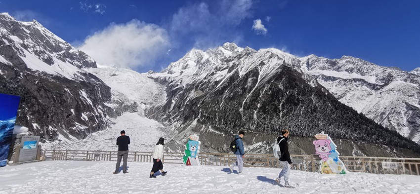 “前天從網上看到海螺溝景區(qū)即將開放的信息,別提多帶勁兒了。這次疫情發(fā)生就一直在家呆著,悶太久了,就想著疫情可控可防的時候,一定要來川西走走,剛好海螺溝離成都車程近,網絡風評也是有口皆碑的?!边h道而來的寧波游客吳先生目之所及盡是玉樹瓊枝、銀裝素裹的雪原冰川風光,激動不已地說:“透透氣、玩玩雪、泡泡湯,回歸自然的感覺真太好了!”