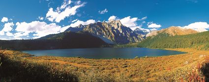 秋色與藍(lán)天相映 明珠與雪山成趣