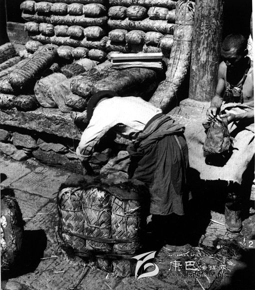康定老鍋莊里的茶葉商人。