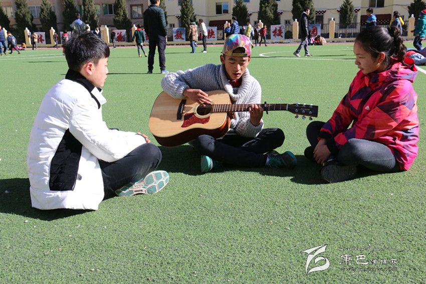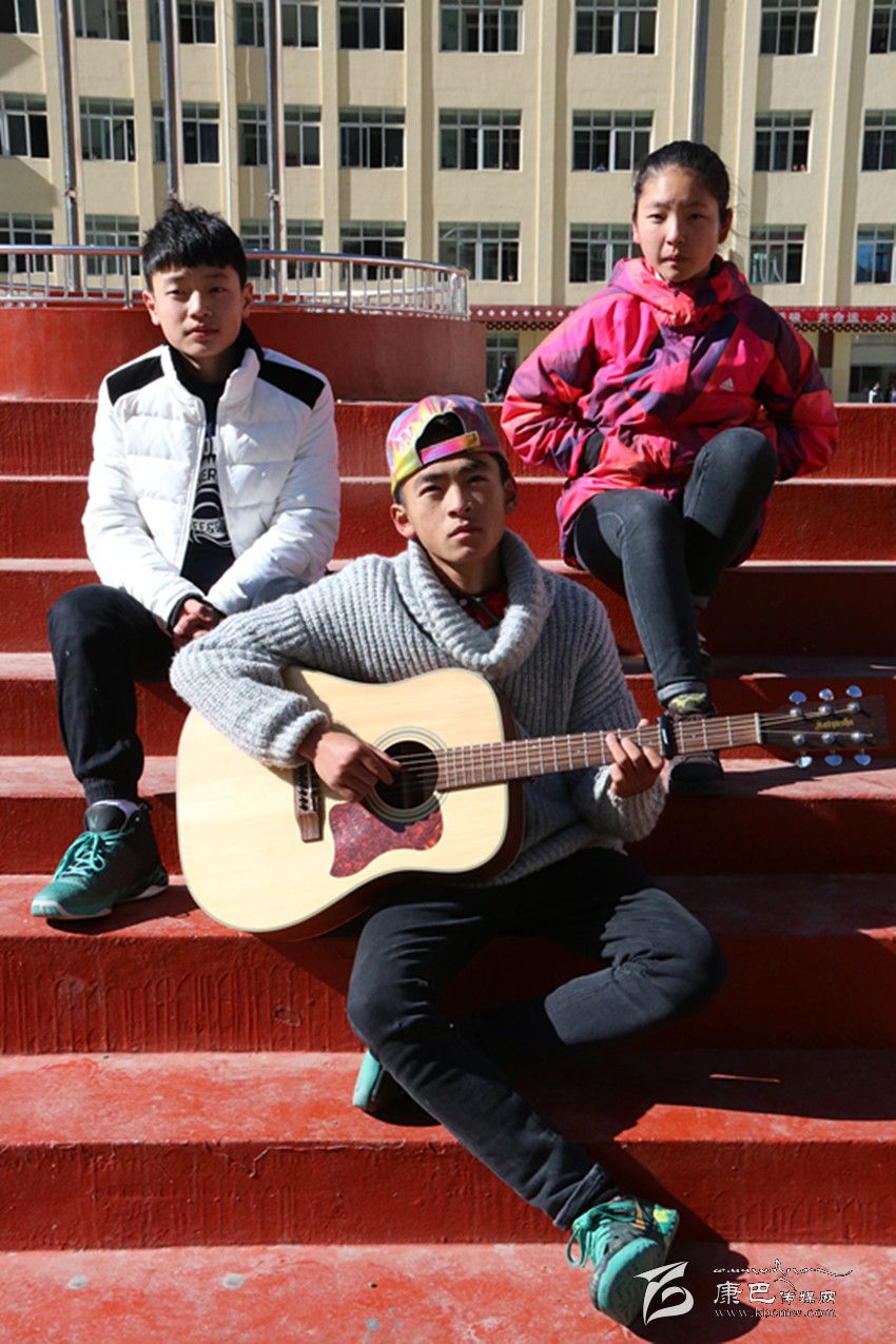 “白云下一座溜溜的城/聽著溜溜的歌聲/李家那溜溜的大姐喲/溜溜愛上藏家大哥喲/尋夢在溜溜的跑馬山/我推著金桶溜溜轉(zhuǎn)/折多河溜溜穿城過喲/頌經(jīng)聲溜溜的傳承喲/悠揚琴聲在溜溜小城/我溜溜等待著愛人/跑馬山龍打溜溜撒喲/心就在溜溜城中活……”最近一首名叫《溜溜》的歌曲刷爆了記者的朋友圈,不到一天的時間點擊率達到12000多,干凈的嗓音碰上吉他、貝斯等流行元素,給聽眾帶了一種不同的音樂享受?!读锪铩返脑~曲作者周麒(當然他也是原唱之一)和主唱昂汪央金拉姆、周楠都是來自康定中學的學生,在冬日的午后,記者在康定中學的籃球場見到了這三位一臉天真的原創(chuàng)者。初見記者,他們還有一些靦腆、緊張,但是一談到音樂,他們立刻有了說不完的話。