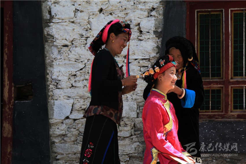 丹巴嘉絨藏族女子的成年禮一般以自然村落為單位,舉行的時間需請喇嘛或貢巴擇吉日,或在農(nóng)事有閑的時候。參加成年禮的成年女性人數(shù)不定,可集體、也可以單獨(dú)舉行,其原則是女子必須歲足17歲;若已足17歲,如遇農(nóng)事繁忙,也可適當(dāng)延期。