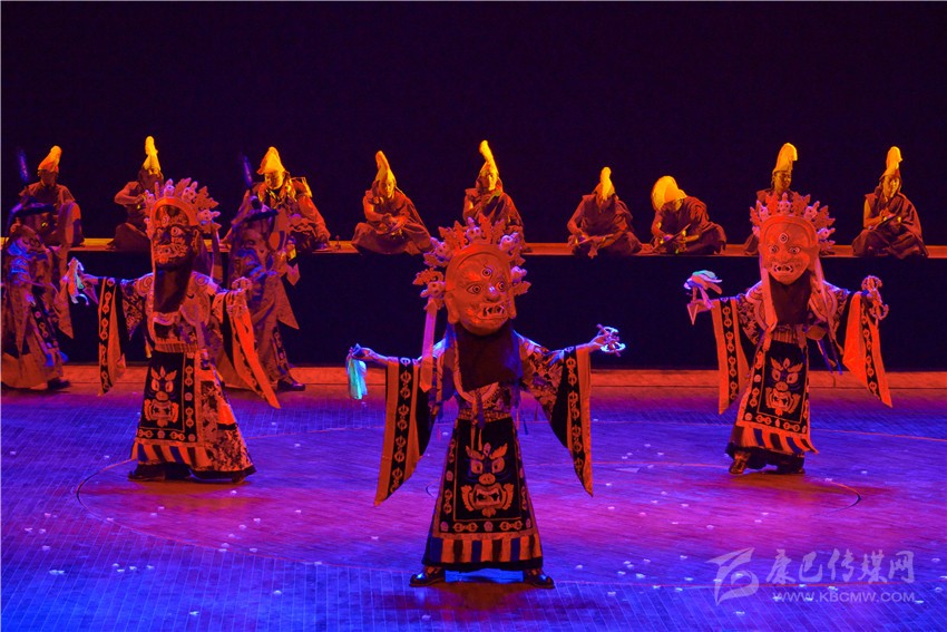 《亞丁?三怙主》歌舞劇不僅從藏族人民日常生產(chǎn)生活中提煉出很多舞蹈文化元素,還對(duì)宗教樂舞進(jìn)行了合理的借鑒。舞劇中用了道孚嘛呢鍋莊、德格卓且、巴塘弦子、爐霍鍋莊、石渠真達(dá)鍋莊、丹巴鍋莊、稻城鍋莊等民間舞蹈等元素,加以深化再創(chuàng)作,把原有的民間舞蹈的步伐、舞姿進(jìn)行夸張性的舞臺(tái)處理,并配以適當(dāng)?shù)年?duì)形,以更加適應(yīng)劇場舞臺(tái)的表演;大膽創(chuàng)新引入寺廟樂舞,寺廟樂舞本是藏傳佛教寺廟在宗教節(jié)日表演的祈福性舞蹈,舞劇編創(chuàng)人員合理借用寺廟樂舞的音樂、步伐、面具等,用以表現(xiàn)藏族人民與自然抗?fàn)帲粦植磺木衩婷?;用泥土筑墻本是藏族人民建造房屋時(shí)的一種建筑技藝,在民間演繹成為地方舞種,舞劇編創(chuàng)人員將筑墻的基本步伐和動(dòng)作加以提煉,編創(chuàng)了一段約兩分鐘的打舞,用夸張的步伐和動(dòng)作,配以鏗鏘有力的勞動(dòng)號(hào)子,將豪氣灑脫的打墻舞氣氛推向高潮,以表達(dá)藏族人民的勤勞、勇敢與豪邁。州委黨校高級(jí)講師陶勇說:“《亞丁?三怙主》歌舞劇旨在講解香格里拉之魂,詮釋亞丁三怙主的本意,闡釋三座神山文化包含佛陀的核心教義。亞丁三怙主即仙乃日(觀世音菩薩)、央邁勇(文殊菩薩)、夏諾多吉(金剛手菩薩),它們分別象征慈悲、智慧、力量。這部歌舞劇是解讀藏民族精神文化、弘揚(yáng)藏民族真善美勇、傳遞康巴文化真諦的民族歌舞劇。歌舞劇通過《序》、《慈明》、《慧明》、《力明》、《尾聲》五個(gè)篇章,充分展示藏族傳統(tǒng)文化中熱情、好客、善良、慈悲、勇敢、追求和諧的優(yōu)秀價(jià)值觀,將民族文化融入到社會(huì)主義核心價(jià)值觀,展現(xiàn)了當(dāng)代人民群眾的幸福生活。同時(shí)對(duì)游客來講不僅豐富了亞丁文化,填補(bǔ)了游人僅僅觀賞雪山不知文化內(nèi)涵的短板,為以后推介甘孜州做了很好的示范?!?/span>