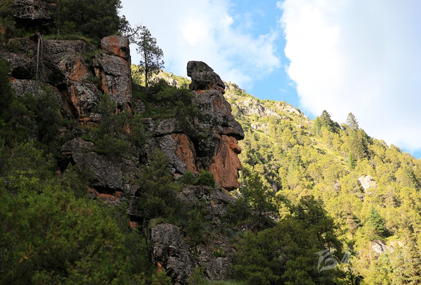 最近,藏族著名攝影家、藏地陽光雜志主編根秋多吉先生與藏地陽光記者丁真尼瑪,在德格縣柯洛洞鄉(xiāng)多爾家溝采訪時,拍攝到了一組奇特的作品。鏡頭中這組山巖由于自然風(fēng)化的原因,形狀構(gòu)造像極了傳奇的嶺·格薩爾王。