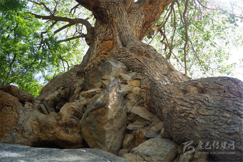 站在巴塘縣城夏邛鎮(zhèn)的廣場上,目光穿過鱗次櫛比的建筑上空,在東南方一角,遠(yuǎn)遠(yuǎn)就能看見一棵高大的桑樹沖破了城市的圍裹,直指蒼穹,在微風(fēng)中搖動著嫩綠的枝葉。一位在廣場上搖動轉(zhuǎn)金筒的老人告訴我,在那棵樹下,有一塊巨石,上面鐫刻有許多文字,因為石頭與樹共生共長在一起,人們?nèi)∽鳌肮派1敝烂?,它也因此成為了聞名巴塘的景點(diǎn)之一。聽后,我怦然心動,乘著涼爽的晨風(fēng)我向著“古桑抱石”景點(diǎn)走去。