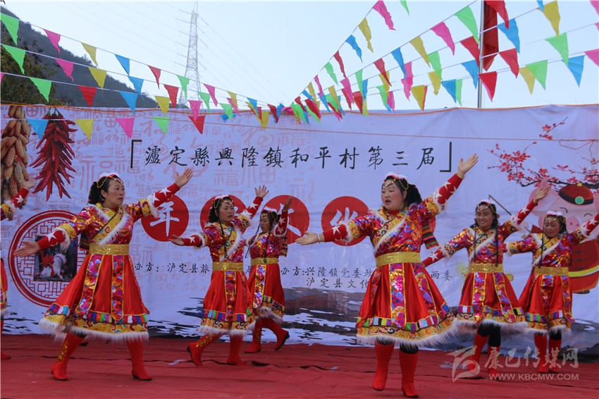 “這里有舉世聞名的牛背山,還有那風(fēng)景秀麗的娘娘山,蜿蜒曲折的大渡河,遠(yuǎn)方的朋友啊!歡迎你到和平來!”村民自告奮勇上臺(tái)演唱的歌曲,引得觀眾陣陣掌聲?!拔矣昧恕稓g迎你到康巴來》的調(diào),把歌詞改了,還是要體現(xiàn)我們的地方特色。唱得怎么樣不說,這是我們老百姓的舞臺(tái)?!?/p>