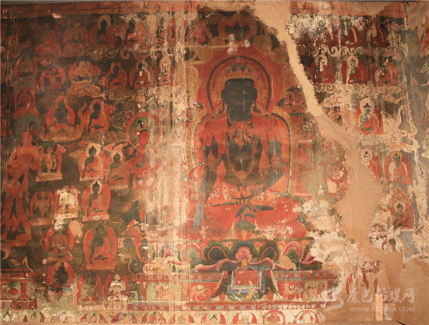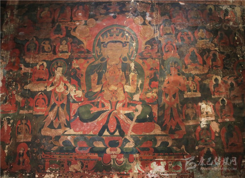 而吉祥天母殿內(nèi)的壁畫雖規(guī)模不及百柱大殿的壁畫大,但殿內(nèi)保存的壁畫歷史更悠久,畫風(fēng)更獨(dú)特,是一座取之不盡用之不竭的壁畫寶庫(kù),是目前當(dāng)?shù)乇4娴谋诋嫯?dāng)中規(guī)模最大最古老的壁畫之一。