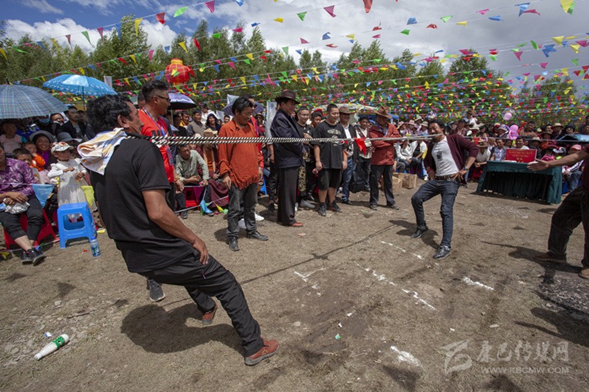 除以上活動(dòng),滾桶接力、俯撐馬鞍吃葡萄、穿藏裝揉糌粑、套牛角等趣味比賽無(wú)不展示民族體育的獨(dú)特風(fēng)格。“這種拔河還是第一次見(jiàn),很有意思?!逼渲校案裢獭北荣悾ò褞ё犹自诓弊由习魏樱┥畹糜^眾喜愛(ài)。