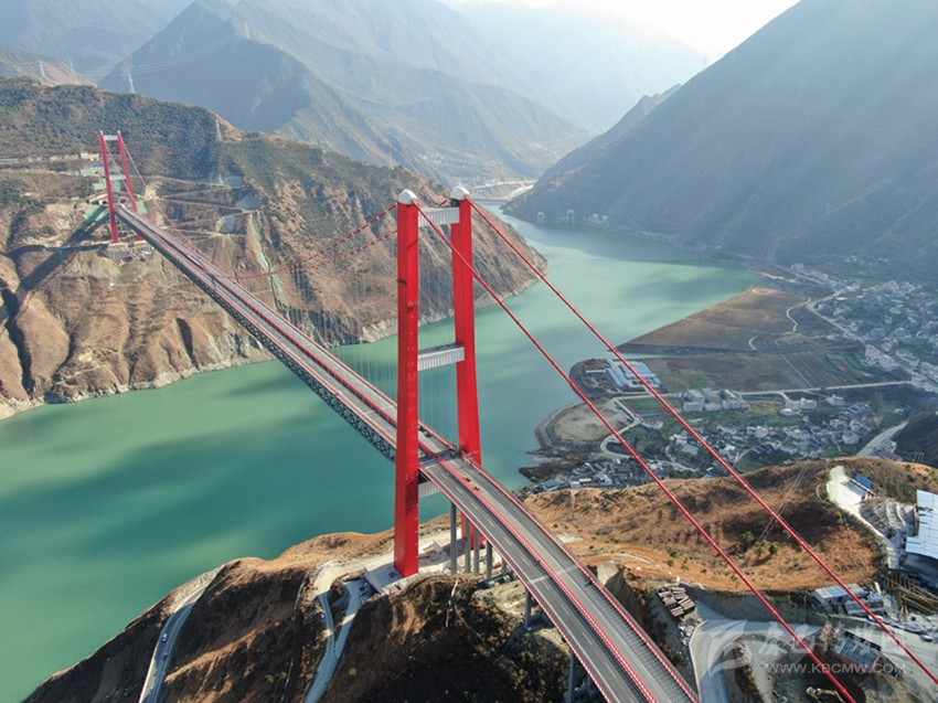 在瀘定,主跨1100米長的瀘定大渡河興康特大橋,好似一條巨龍橫跨在奔騰咆哮的大渡河上。遠(yuǎn)處觀望,能感覺到峽谷的風(fēng)猛烈地刮過,兩岸的山勢高拔嶙峋,仿若刀劈斧削一般讓人眩暈。大橋穩(wěn)穩(wěn)地橫架在兩山之間,它是人類智慧與創(chuàng)造力的結(jié)晶。