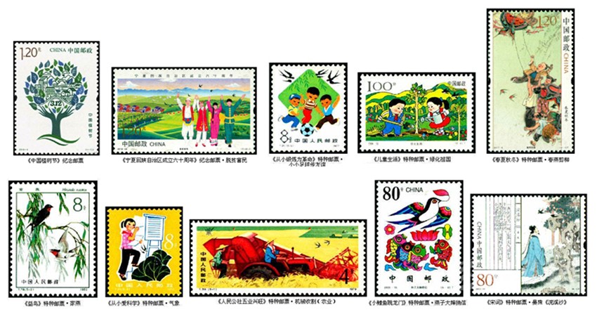 2019年3月12日,中國(guó)郵政發(fā)行《中國(guó)植樹(shù)節(jié)》紀(jì)念郵票,圖案主體是意為雙手托起的綠色家園的一株枝繁葉茂的參天大樹(shù),樹(shù)干枝頭上方層層綠葉中設(shè)計(jì)點(diǎn)綴了象征城鎮(zhèn)、鄉(xiāng)村、河流、山川、藍(lán)天白云等符號(hào)化圖形,其中就有兩只飛燕。寓意通過(guò)全民植樹(shù)造林活動(dòng),改善生態(tài)和生活環(huán)境,共同創(chuàng)造綠水青山的美麗中國(guó)。郵票中出現(xiàn)燕子象征大自然的生態(tài)美還有一枚即2019年9月19日發(fā)行的《寧夏回族自治區(qū)成立六十周年》紀(jì)念郵票,其中第二枚“脫貧富民”,圖案展現(xiàn)了寧夏大地的青山綠水,一派生機(jī)盎然的景象,在歡呼的人群上空就飛翔幾只燕子。