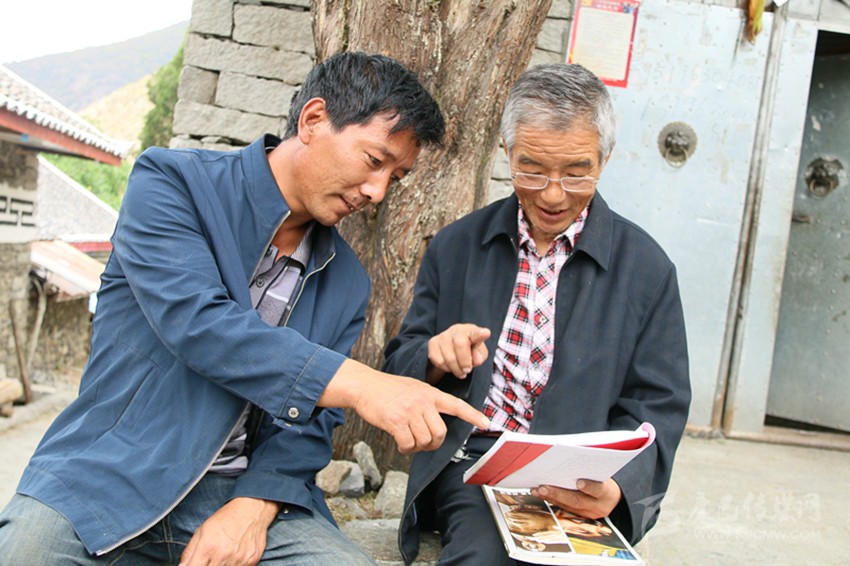 受訪完畢,整理好衣袖,帶上眼鏡,徑直走到“老朋友”身邊,翻開(kāi)《康巴鄉(xiāng)情拾遺——談天說(shuō)地龍門陣》,賈熱哲細(xì)細(xì)品味。這時(shí)候,賈家的院壩靜了下來(lái),整個(gè)崩崩沖村也靜了下來(lái)。
