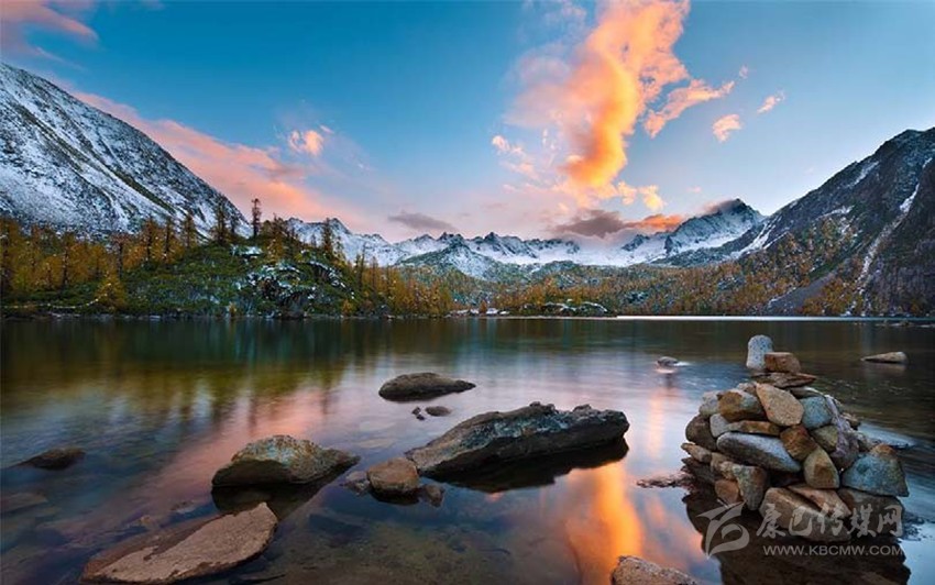 這里的樹木都是連排成片、整齊劃一的, 隨著季節(jié)的變換,呈現(xiàn)出不同的色彩,讓人不得不感嘆大自然的神奇。那一片紅彤彤的樺樹林, 盛開得如此熾烈,存蓄了無窮的力量,恨不得把周圍的湖水、山峰通通染紅,渲染得嬌媚動(dòng)人。