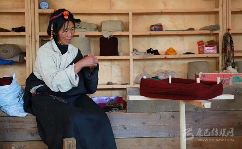 “庫(kù)”,這層細(xì)軟的底絨被表層粗糙的牦牛毛所覆蓋,且本身細(xì)長(zhǎng)彎曲,無(wú)法用剪刀方便地剪下,故而只能手工采集。從每年春天采集牦牛、羊絨,到捻成線(xiàn),到染成不同顏色,再到織成一匹布,整個(gè)過(guò)程全由扎西巴姆和她帶領(lǐng)的幾個(gè)藏族婦女手工完成,全部學(xué)會(huì)這門(mén)技術(shù)需要3—4年,現(xiàn)在麥宿只有4人全部掌握。但與這費(fèi)力耗時(shí)的工藝形成殘酷對(duì)照的是,手工織物在機(jī)器快速生產(chǎn)的現(xiàn)代社會(huì),市場(chǎng)經(jīng)營(yíng)可謂舉步維艱。雖然工巧明系創(chuàng)立的平臺(tái)專(zhuān)門(mén)收購(gòu)編織班做出來(lái)的產(chǎn)品,但購(gòu)買(mǎi)的人并不多,編織班創(chuàng)建至今,所得收益只夠勉強(qiáng)維持平衡。