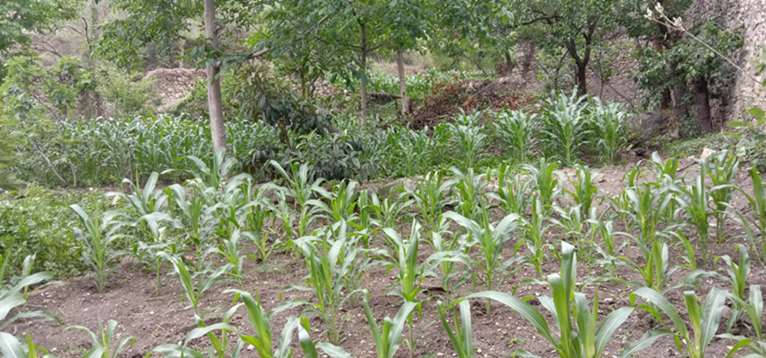 種滿玉米的茶倉遺址。