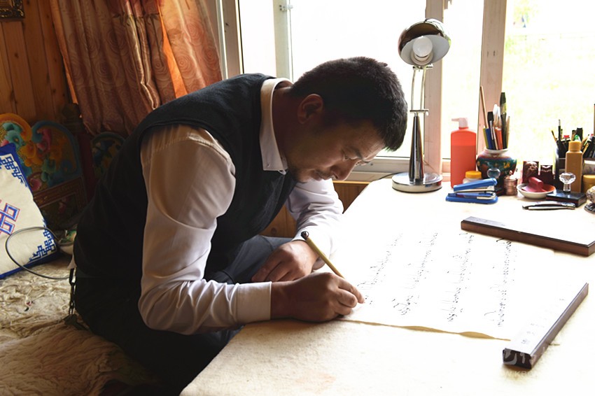 “德珍書法原本就是集歷史上藏文書法大師作品精華而成?!边@些年,昂旺曲批呆在理塘,潛心研究當(dāng)代各個藏文流派名家的書法作品,同時和內(nèi)地的漢字書法名家保持著聯(lián)系。他希望自己沿著“集眾家所長,兼收并蓄”的精神傳統(tǒng),把“德珍派”藏文書法的傳統(tǒng)發(fā)揚廣大,同時能有所創(chuàng)新。