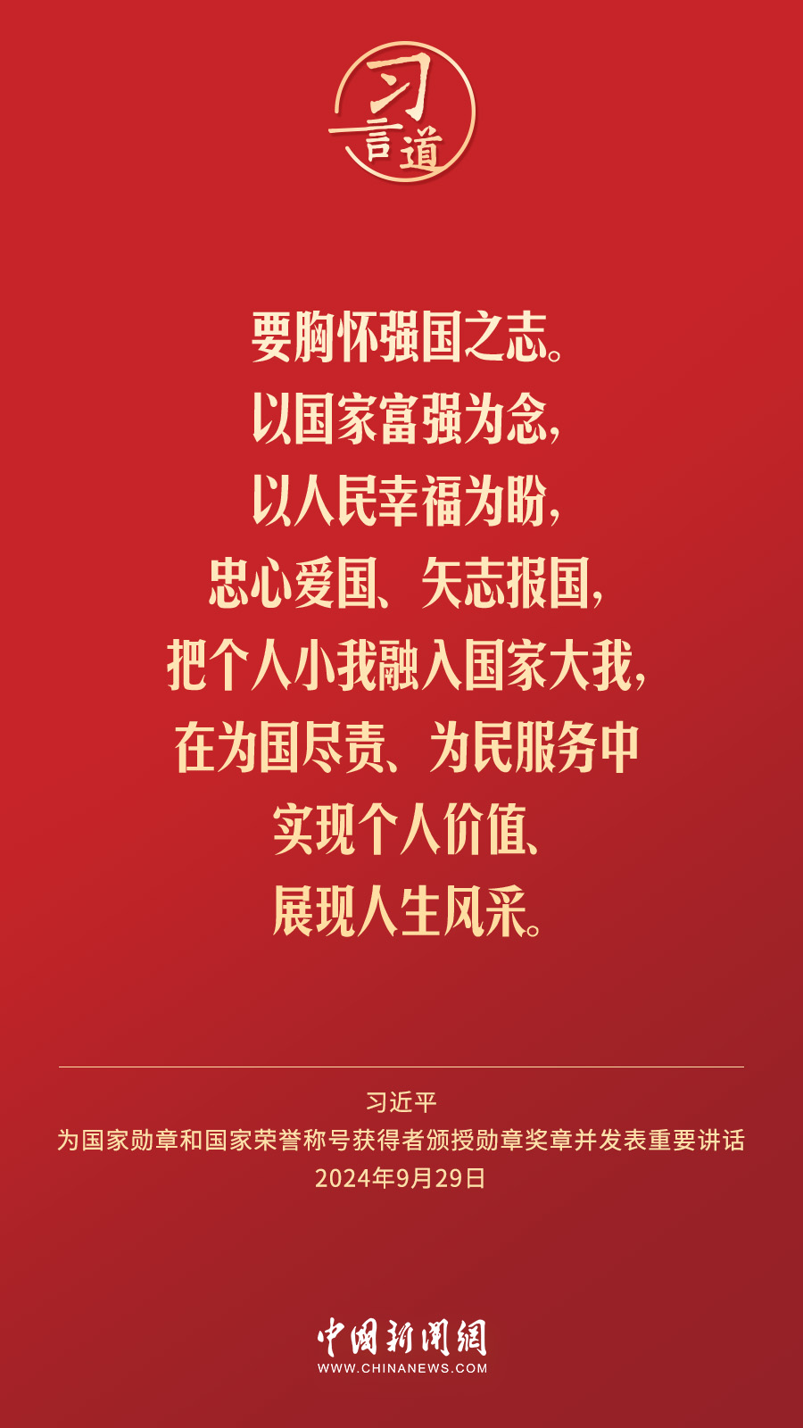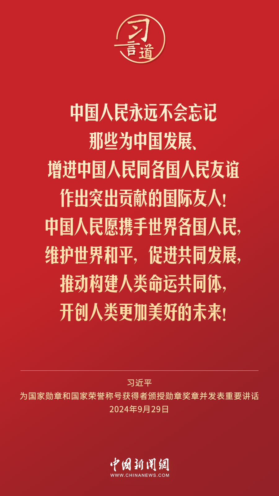 經(jīng)中共中央批準(zhǔn),中華人民共和國(guó)國(guó)家勛章和國(guó)家榮譽(yù)稱(chēng)號(hào)頒授儀式于9月29日上午10時(shí)在人民大會(huì)堂隆重舉行。中共中央總書(shū)記、國(guó)家主席、中央軍委主席習(xí)近平向國(guó)家勛章和國(guó)家榮譽(yù)稱(chēng)號(hào)獲得者分別授予“共和國(guó)勛章”“友誼勛章”和國(guó)家榮譽(yù)稱(chēng)號(hào)獎(jiǎng)?wù)虏l(fā)表重要講話(huà)。習(xí)近平指出——