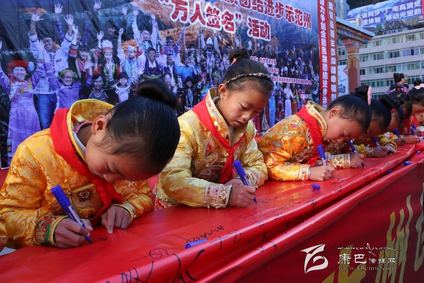 我們的家鄉(xiāng)更好更快地發(fā)展。”11月20日,在我州康定情歌廣場舉行創(chuàng)建全國民族團結(jié)進步示范州“萬人簽名”活動現(xiàn)場,來自省藏校的學(xué)生代表李康珠這樣說道。