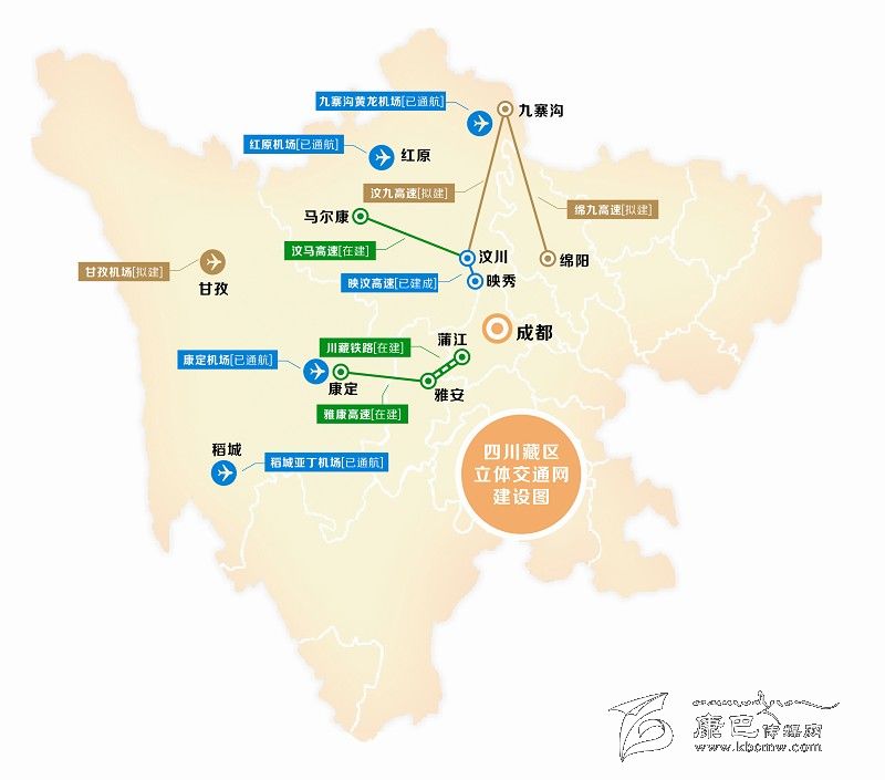 上月出臺的《四川省推進(jìn)實(shí)施長江經(jīng)濟(jì)帶綜合立體交通走廊規(guī)劃工作方案》中提出,我省將加快支線機(jī)場建設(shè),包括進(jìn)一步完善位于四川藏區(qū)的紅原機(jī)場配套設(shè)施,以及將在“十三五”期間,開工建設(shè)同樣位于藏區(qū)的甘孜機(jī)場。鐵路方面也有好消息,備受關(guān)注的川藏鐵路,除了剛剛?cè)€開工的蒲江至雅安段外,還將在明年上馬建設(shè)雅安至康定(新都橋)段。