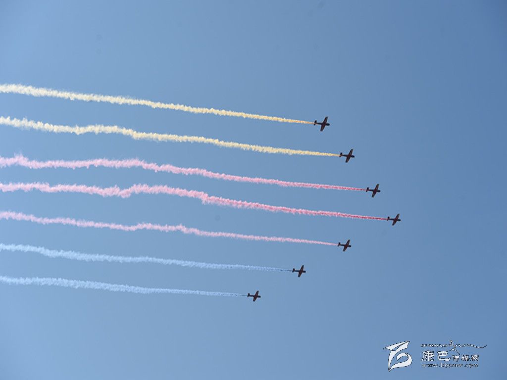 7道彩煙、8道彩煙……絢麗濃艷的彩煙帶成為空中的“吸睛”亮點。