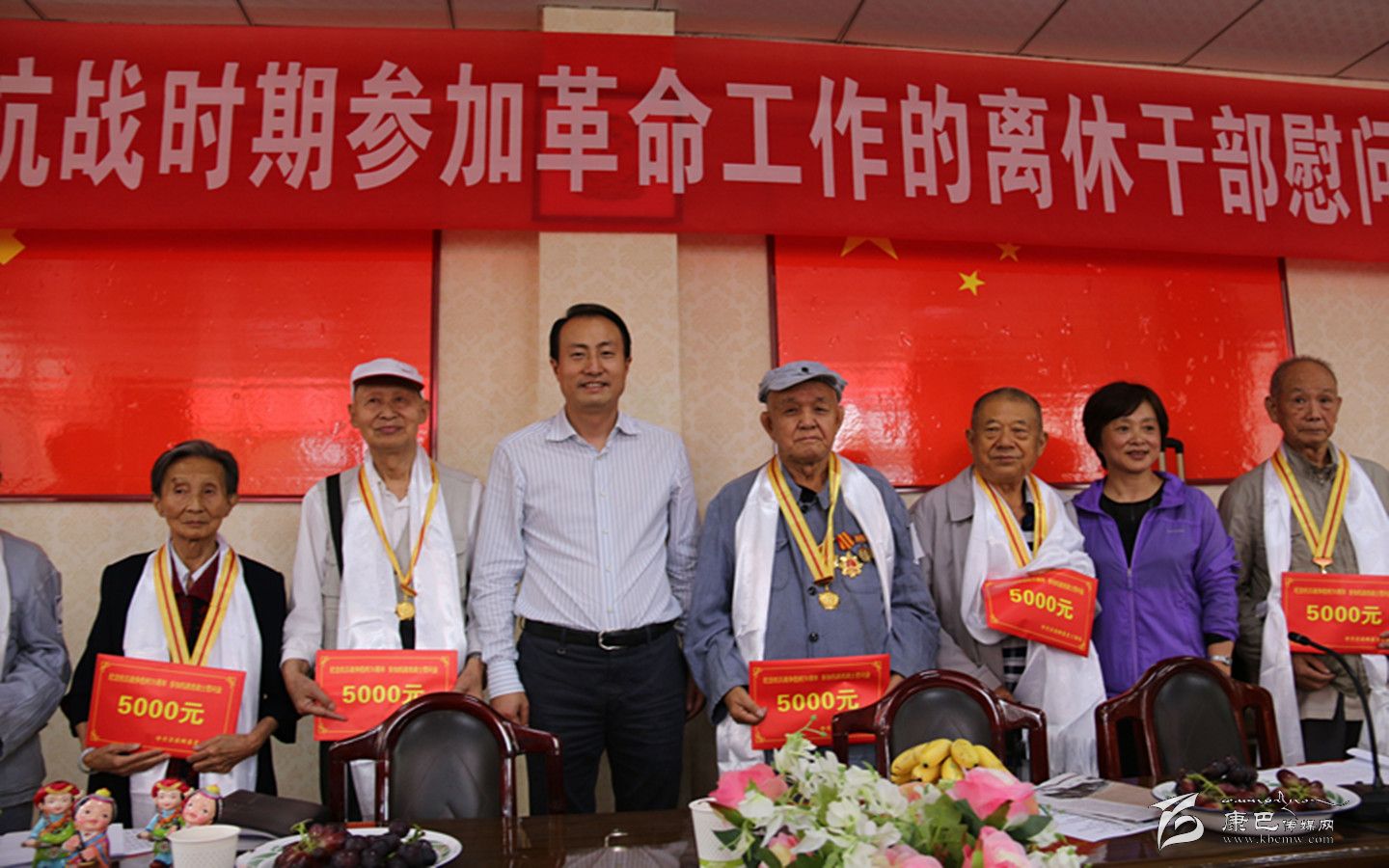 9月2日,甘孜州抗戰(zhàn)時(shí)期參加革命工作的離休干部慰問(wèn)大會(huì)在州屬雅安干休所舉行。州委常委、組織部長(zhǎng)趙波出席會(huì)議并為我州1945年9月前參加過(guò)抗戰(zhàn)的7位老戰(zhàn)士代表頒發(fā)了中國(guó)人民抗日戰(zhàn)爭(zhēng)暨世界反法西斯戰(zhàn)爭(zhēng)勝利70周年紀(jì)念章,同時(shí)還送上了慰問(wèn)金。