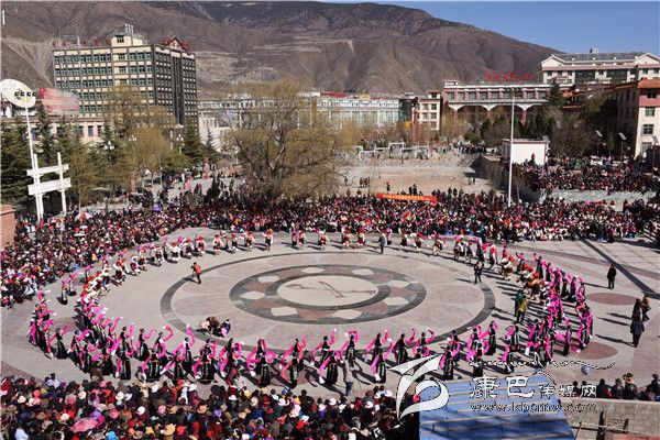 本網(wǎng)訊 (羅凌 志瑪 /文 王娟 多吉澤仁/圖)2月10日正值大年初三,高原江南巴塘陽光燦爛,喜慶祥和。該縣夏邛鎮(zhèn)13個(gè)行政村組成8個(gè)表演隊(duì),1000余名農(nóng)民演員穿著節(jié)日的盛裝,到中山廣場參加“巴塘縣(夏邛鎮(zhèn))2016年迎新春暨藏歷火猴年原生態(tài)非遺文化展演”活動。