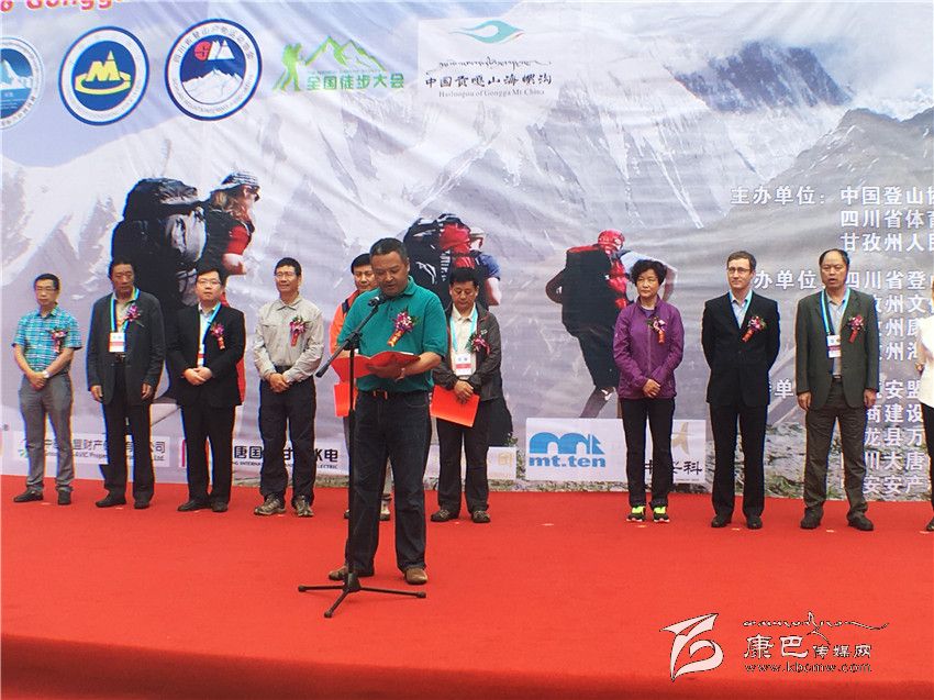 開幕式上,四川省體育局副局長蔣顯倫為2016中國•甘孜環(huán)貢嘎山百公里國際山地戶外運(yùn)動挑戰(zhàn)賽暨徒步大會作致辭。