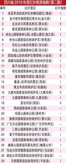 整個(gè)紅葉觀賞季期間,由省林業(yè)廳、省旅游局指導(dǎo),省生態(tài)旅游協(xié)會(huì)監(jiān)測的紅葉觀賞指數(shù)將持續(xù)發(fā)布。每周四,華西都市報(bào)將每周發(fā)布一期“紅葉指數(shù)”。在10月19日四川省林業(yè)廳發(fā)布的第二期紅葉觀賞指數(shù)中可以看到,理縣孟屯河谷、達(dá)古冰川、四姑娘山、九寨黃龍等9個(gè)點(diǎn)位都達(dá)到Ⅱ級(jí)紅葉觀賞指數(shù)。較之上周,更多點(diǎn)位的葉子開始進(jìn)入適宜觀賞期。紅葉巔峰期近在眼前。