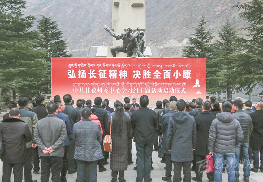 本網(wǎng)訊(記者 楊杰 肖宵 袁飛 /圖)13日,按照州委統(tǒng)一部署,“弘揚(yáng)長(zhǎng)征精神、決勝全面小康”中共甘孜州委中心學(xué)習(xí)組主題活動(dòng)在瀘定紅軍長(zhǎng)征紀(jì)念館啟動(dòng)。州委中心學(xué)習(xí)組54名領(lǐng)導(dǎo)干部在重溫入黨誓詞后,踏上赴成都、眉山、雅安、阿壩四市州學(xué)習(xí)考察之路。本次主題活動(dòng)在考察學(xué)習(xí)后還將啟動(dòng)“思想大解放、能力大提升、工作大見效”討論活動(dòng)和“能力素質(zhì)提升工程”,旨在弘揚(yáng)長(zhǎng)征精神,決勝全面小康,深化“兩學(xué)一做”學(xué)習(xí)教育,動(dòng)員全州黨員干部“做合格黨員、當(dāng)干事先鋒”。州委書記劉成鳴出席啟動(dòng)儀式并講話,州委副書記、州長(zhǎng)肖友才主持儀式。州人大常委會(huì)主任李康、州政協(xié)主席向秋出席啟動(dòng)儀式。