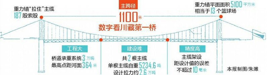 興康特大橋橫跨大渡河,為懸索橋設(shè)計,在整個道橋系統(tǒng)中,全靠主纜拉住橋面、形成支撐。道橋設(shè)計承重系統(tǒng)有3萬多噸,如何拉得?。?/span>