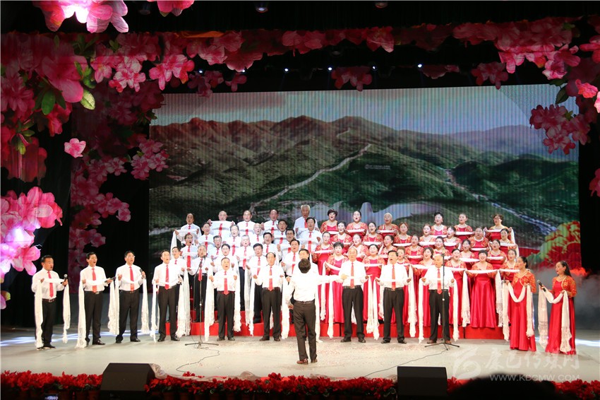 人民大會堂宴會廳華燈璀璨,賓朋濟濟一堂,氣氛喜慶熱烈。主席臺上方莊嚴的國徽高懸,在鮮艷的紅旗映襯下,“1949-2017”的大字年號熠熠生輝。
