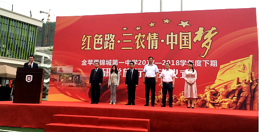 5月2日,“紅色路·三農(nóng)情·中國(guó)夢(mèng)”紅色研學(xué)行啟動(dòng)儀式在成都市金蘋(píng)果錦城第一中學(xué)舉行。四川省委宣傳部、四川省旅游發(fā)展委員會(huì)代表,500余名師生、家長(zhǎng)代表參加儀式。