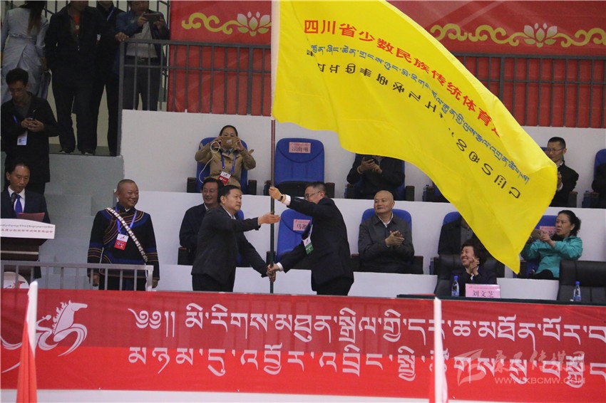 閉幕式上舉行了會(huì)旗交接儀式,由甘孜州委常委、州人民政府副州長李一昕將運(yùn)動(dòng)會(huì)會(huì)旗交還組委會(huì)副主任、省民族宗教委主任張富國,由張富國將會(huì)旗轉(zhuǎn)交給下屆民族運(yùn)動(dòng)會(huì)承辦單位代表涼山州委常委、州人民政府副州長裴啟斌。四川省第十六屆少數(shù)民族傳統(tǒng)體育運(yùn)動(dòng)會(huì)將于2022年在涼山州舉行。