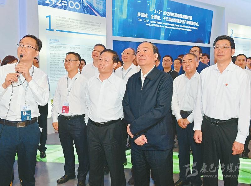 9月19日,中共中央政治局委員、中宣部部長黃坤明等參觀網(wǎng)絡安全博覽會。 川報記者 歐陽杰 攝