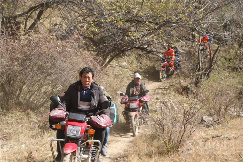 11月4日,澤仁頓珠在中轉(zhuǎn)站接到第一個(gè)任務(wù)——送一名搶險(xiǎn)隊(duì)員和約50公斤的物資到堰塞體上。從則巴村出發(fā)鉆進(jìn)灌木叢中,他才感受到路途艱難。所謂的道路是之前的人和摩托車(chē)踩出來(lái)的“騾馬道”,最窄的地方僅約30厘米。張牙舞爪的灌木枝不時(shí)從臉上、手臂上劃過(guò),路兩邊不是陡坡,就是十幾米高的懸崖。
