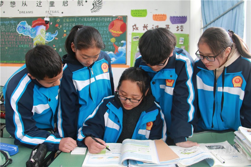 12月29日中午,記者在康定中學(xué)看到,一位皮膚黝黑、個(gè)子瘦小的女生端坐在教室里,手捧一本地理課外資料,正一臉滿足地向同學(xué)們講解著書中的“奧秘”。眼前這個(gè)“小老師”名叫擁忠夏姆,是康定中學(xué)高一年級8班的學(xué)生。