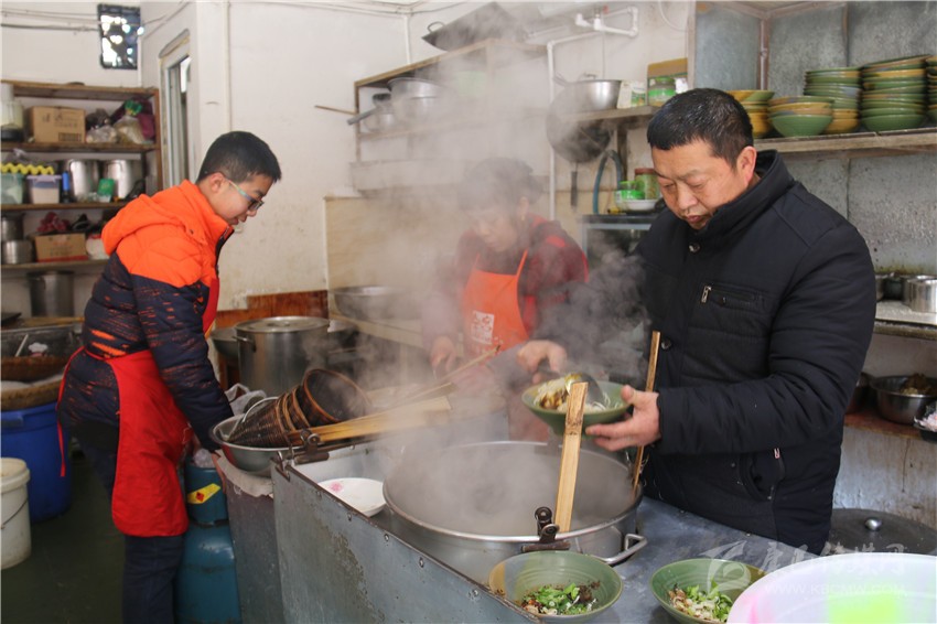 楊紅清一家在康定南郊經(jīng)營面館已有8年。8年來,他一直堅(jiān)持春節(jié)照常營業(yè),正月十五再回家與親友團(tuán)聚。正因?yàn)槟昴甏汗?jié)不休業(yè)也不漲價(jià),老楊的面館積累了很多熟客。被問道春節(jié)照常營業(yè)的原因,楊紅情說:“無論什么時候,吃飯都是人最基本的需要,有些人因?yàn)楦鞣N原因,過年找不到地方吃飯,我家的面條也許就是某人的團(tuán)年飯,所以自己辛苦一點(diǎn)也很高興。另外,我的家人都在這里,店里忙完,一家人一起做年夜飯,然后一起吃,也很高興?!?/p>